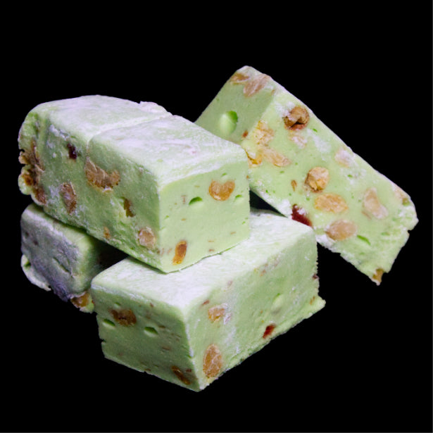 Our pistachio nougat is more than just a sweet treat, it's an experience. Its beautiful green hue and inviting aroma make it an ideal gift for any occasion, or a sophisticated indulgence for yourself. Whether enjoyed with a cup of coffee, as a delightful after-dinner treat, or simply as a moment of pure bliss, our pistachio nougat promises an unforgettable taste sensation. Experience the rich, nutty elegance – order yours online today!